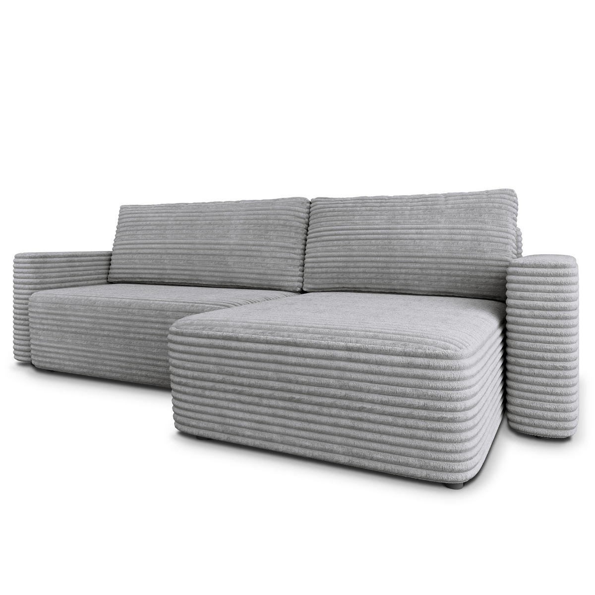 MASSENO ECKSOFA TELIN Hellgrau Kordstoff mit Schlaffunktion