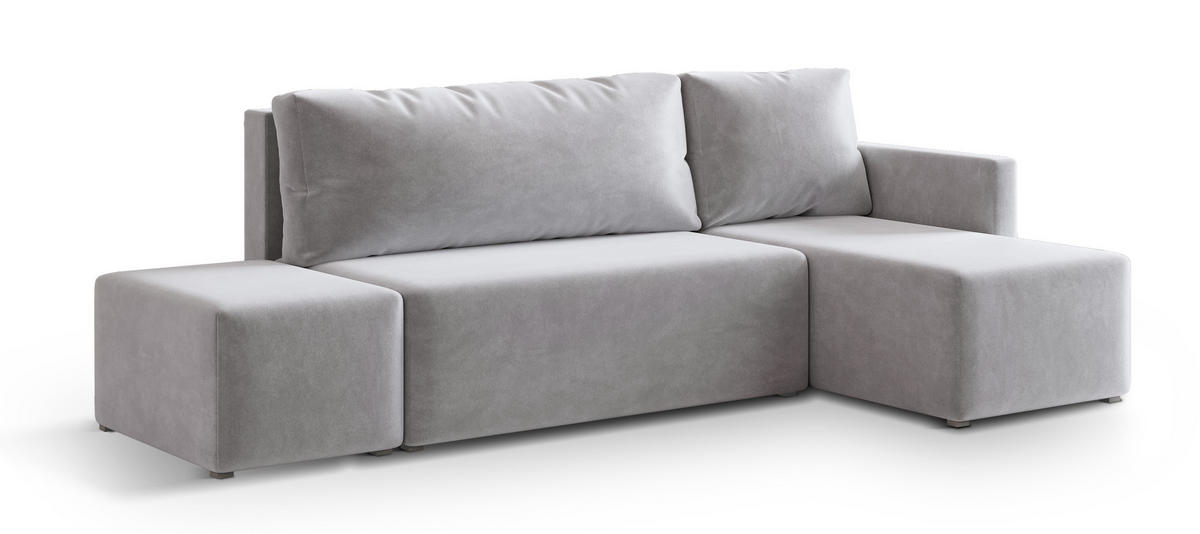ECKSOFA VELOTTI R-S Hellgrau Plüsch-Stoff mit Schlaffunktion - Hellgrau, Holz (261/143cm) - MASSENOMASSENO
