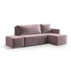ECKSOFA VELOTTI R-S Rosa Plüsch-Stoff mit Schlaffunktion - Rosa, Holz (261/143cm) - MASSENO