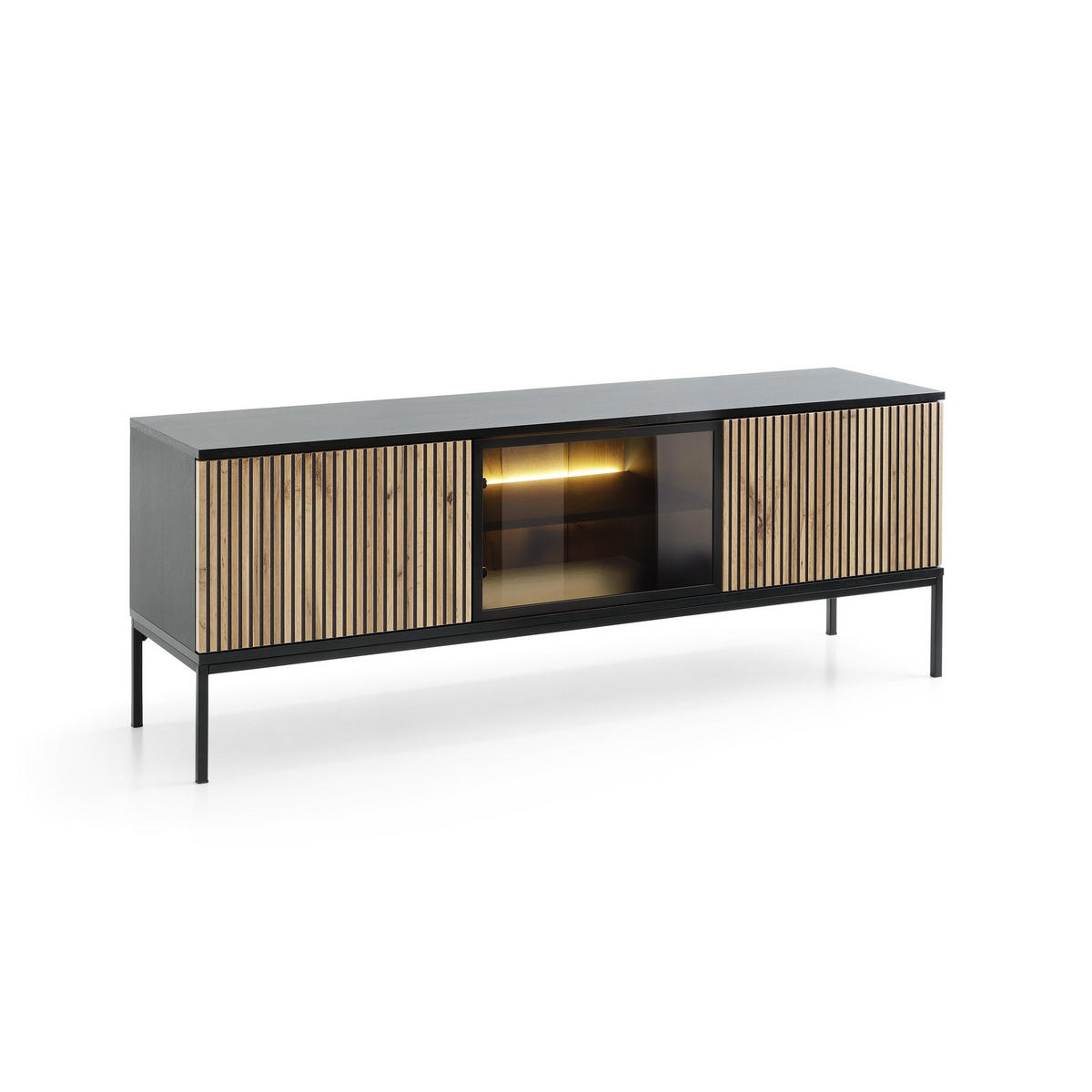 LOWBOARD SENTIERO 154x39x56 cm mit 3 Türen Schwarz - Eiche Wotan/Schwarz, Holzwerkstoff (154/56/39cm) - MASSENO