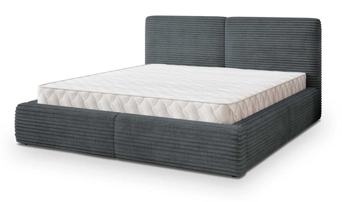 MASSENO POLSTERBETT FELURO 160x200 cm mit Bettkästen - Grau