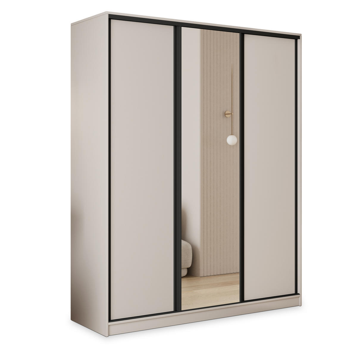 Wählen Sie einen dreitürigen Schrank, der Ihr Zuhause verändert und Harmonie schafft. Sorgen Sie für Ordnung, Stil und Komfort – alles in einem Möbelstück! Eigenschaften: - Der Schrank besteht aus hochwertiger laminierter Platte, was seine Stabilität, Haltbarkeit und Widerstandsfähigkeit gegenüber täglichem Gebrauch garantiert.