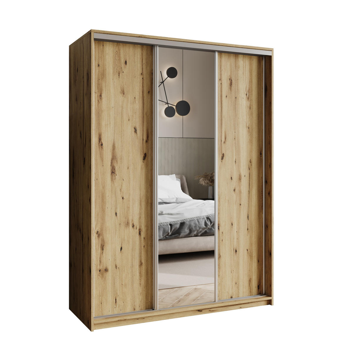 SCHWEBETÜRENSCHRANK TAVI 150/205/60 cm 3-türig mit Spiegel Eiche Artisan - Eiche Artisan, Holzwerkstoff (150/205/60cm) - MASSENO