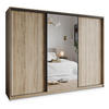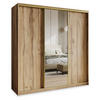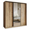 MASSENO SCHWEBETÜRENSCHRANK TAVI 150/205/60 cm 3-türig mit Spiegel Eiche Artisan