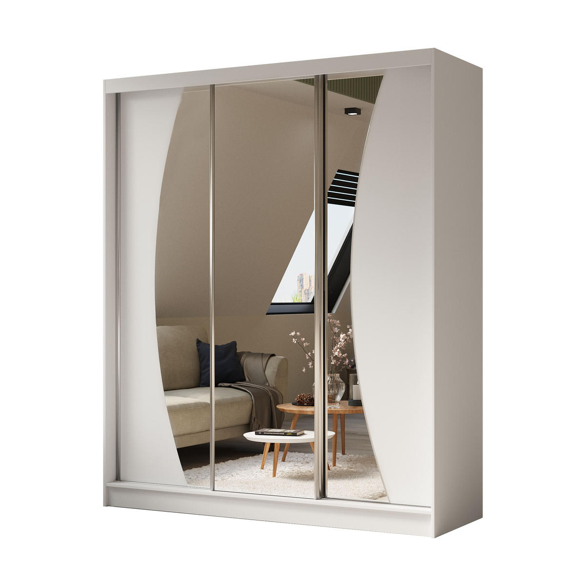 MASSENO SCHWEBETÜRENSCHRANK VOCE 180/216/61 cm 3-türig mit Spiegel Weiß