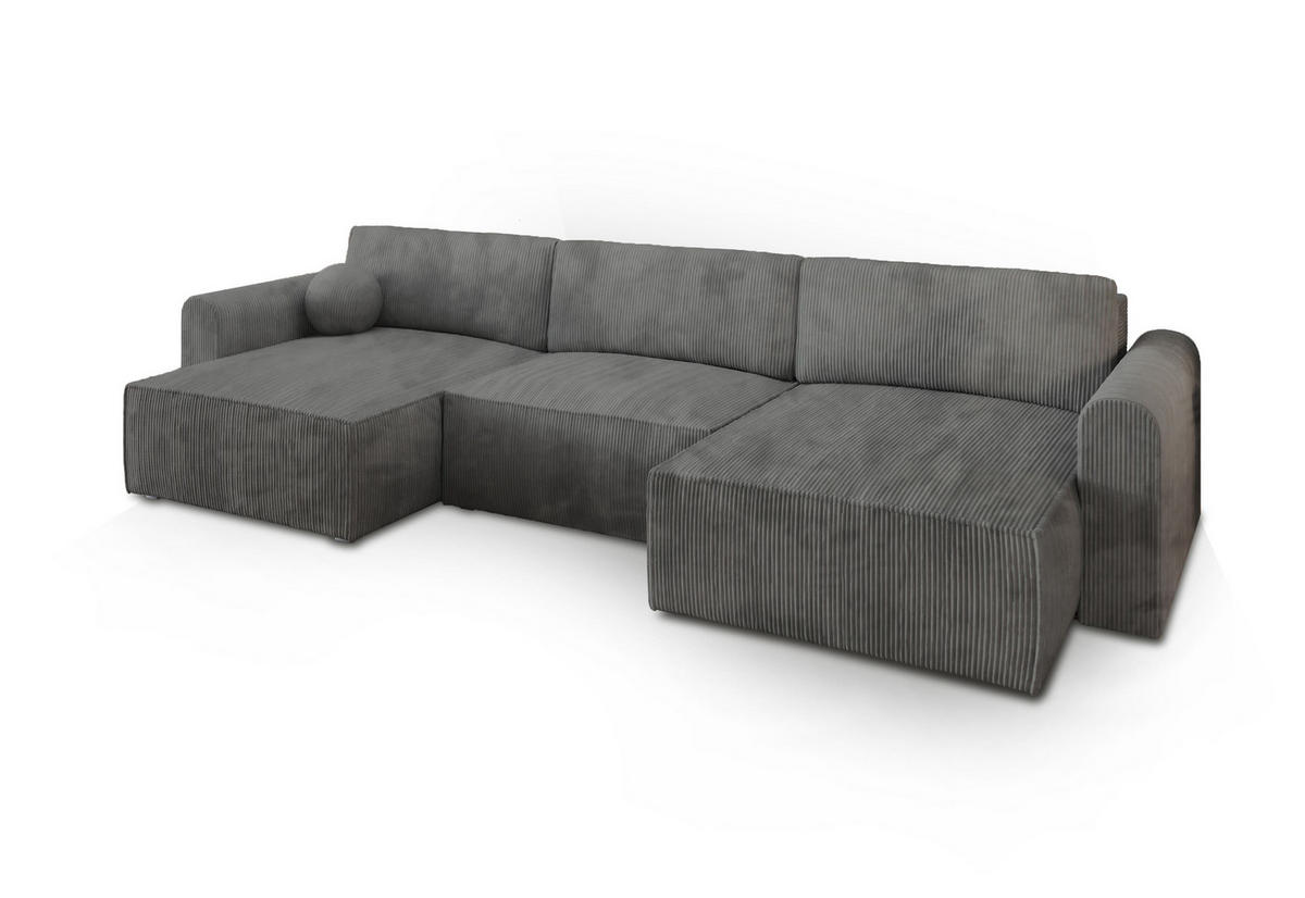 MASSENO WOHNLANDSCHAFT FENTO P Grau Kordstoff mit Schlaffunktion