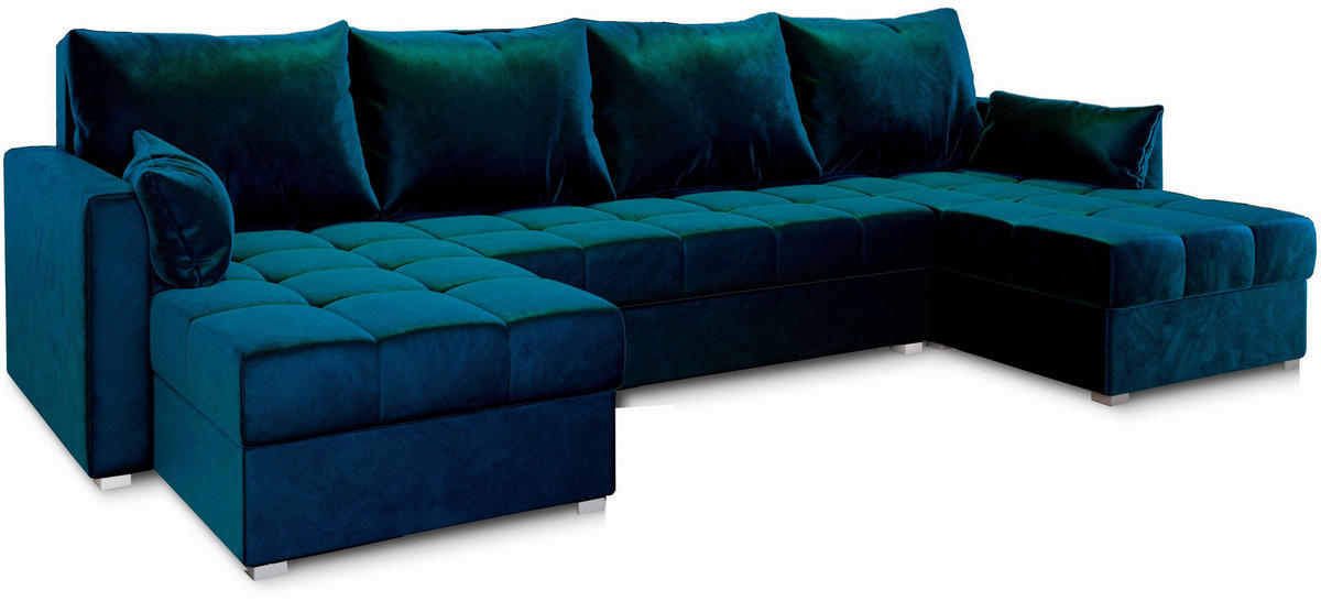 MASSENO WOHNLANDSCHAFT NAKO Blau Plüsch-Stoff mit Schlaffunktion