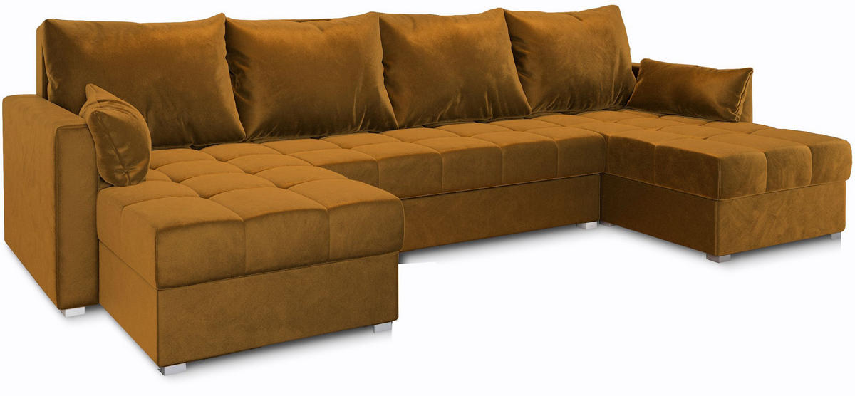 MASSENO WOHNLANDSCHAFT NAKO Gelb Plüsch-Stoff mit Schlaffunktion
