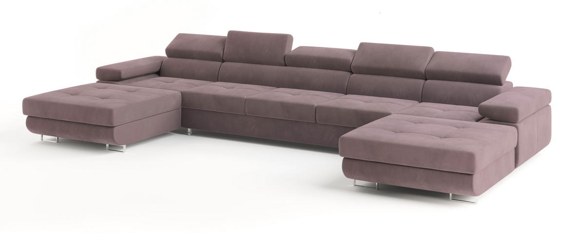 MASSENO WOHNLANDSCHAFT OMBRA Lila Velours-Stoff mit Schlaffunktion