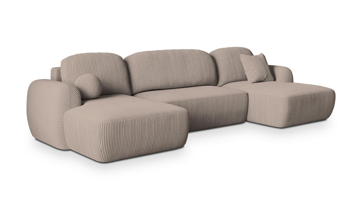 MASSENO WOHNLANDSCHAFT SAVONA P Beige Kordstoff mit Schlaffunktion