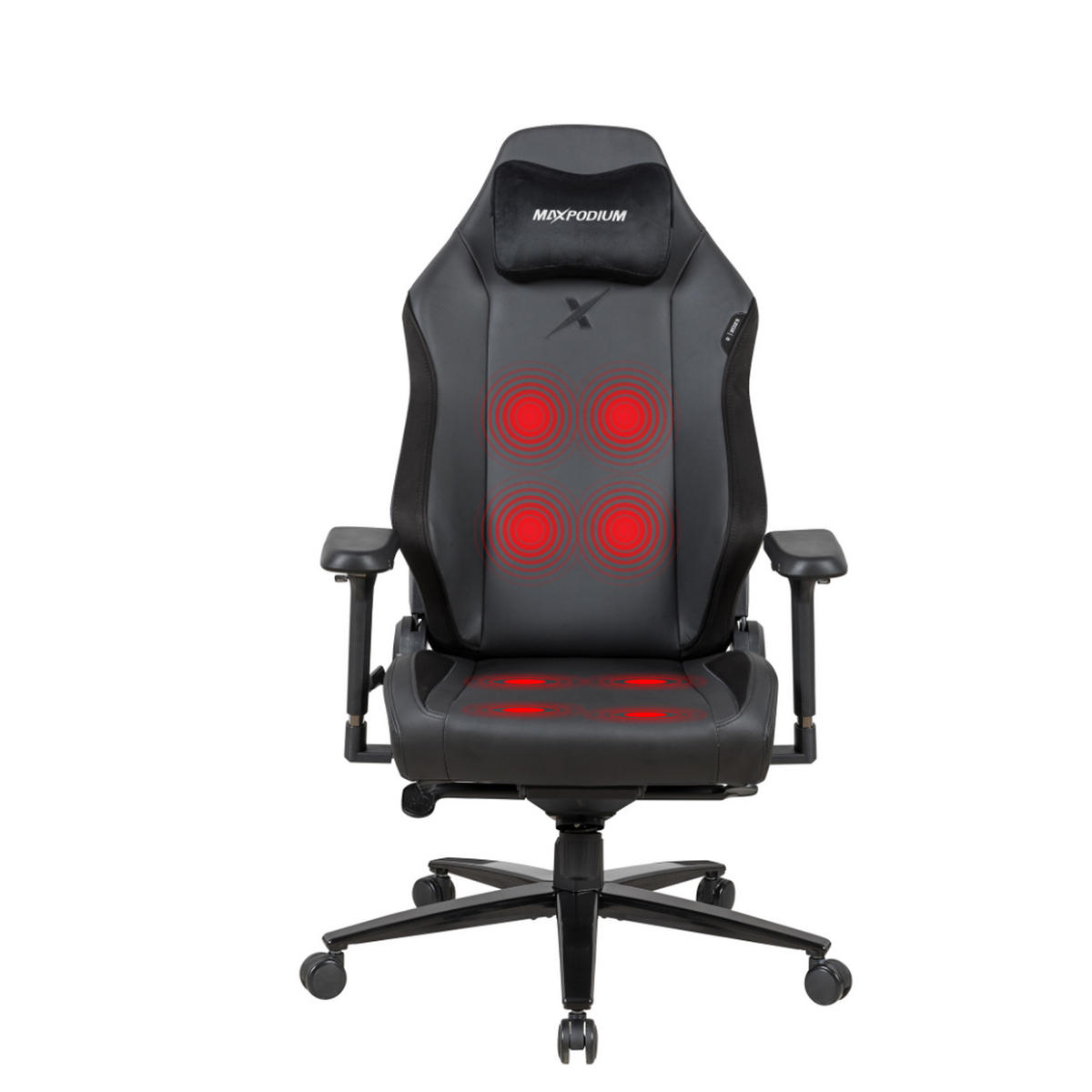 Ausgestattet mit einem integrierten Massagesystem mit acht Vibrationspunkten sorgt dieser Stuhl für gezielte Entspannung im Rücken- und Sitzbereich. Die Steuerung erfolgt über eine moderne Bedieneinheit mit verschiedenen Programmen zur Anpassung von Intensität, Dauer und Massagezonen.