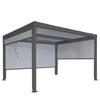 Dieser Pavillon ist mit einem Dach aus drehbaren Lamellen ausgestattet. Durch die Verwendung von drehbaren Lamellen kann das Sonnenlicht individuell angepasst werden, um ein perfektes Schatten- und Lichtverhältnis zu schaffen. Mithilfe einer Kurbel können die Lamellen einfach eingestellt werden. Dieser Gartenpavillon bietet somit nicht nur eine stilvolle Optik, sondern auch eine hohe Funktionalität und Widerstandsfähigkeit. Die perfekte Wahl für alle, die ihre Zeit im Freien genießen möchten und dabei nicht auf Komfort und Qualität verzichten wollen.