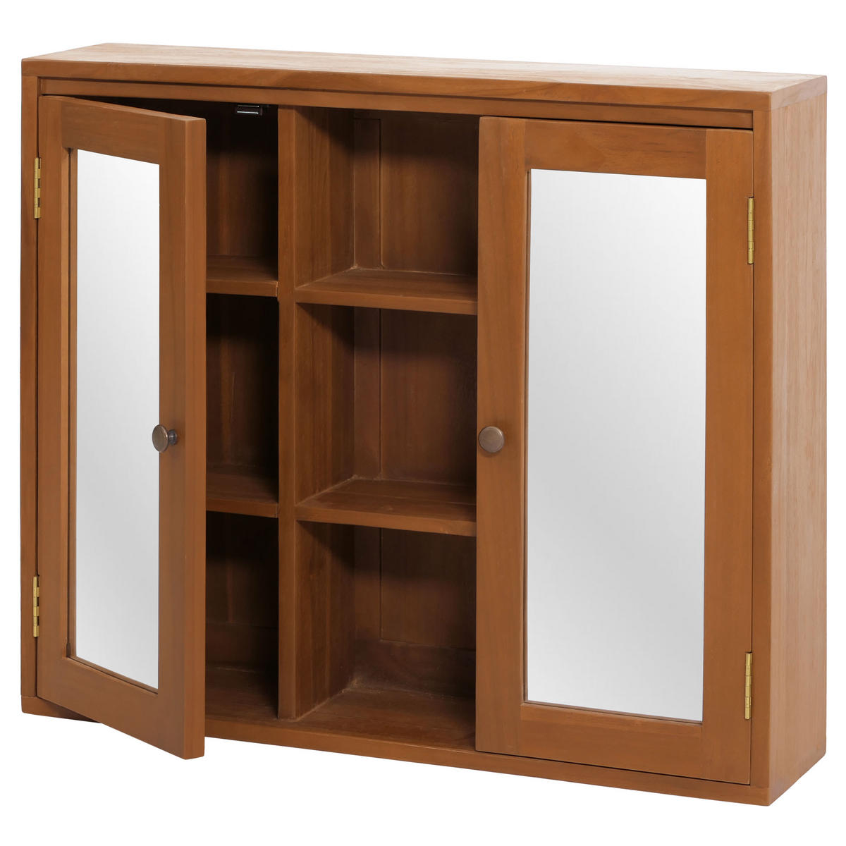 - Der Teak-Spiegelschrank M85 aus langlebigem B-Grade-Teakholz (20-30 Jahre gereift) überzeugt mit natürlicher Feuchtigkeitsresistenz und ist ideal für Nassräume. Mit neun Ablagefächern, Magnetverschlüssen und einfacher Wandmontage bietet er Funktionalität und stilvolles Design.
