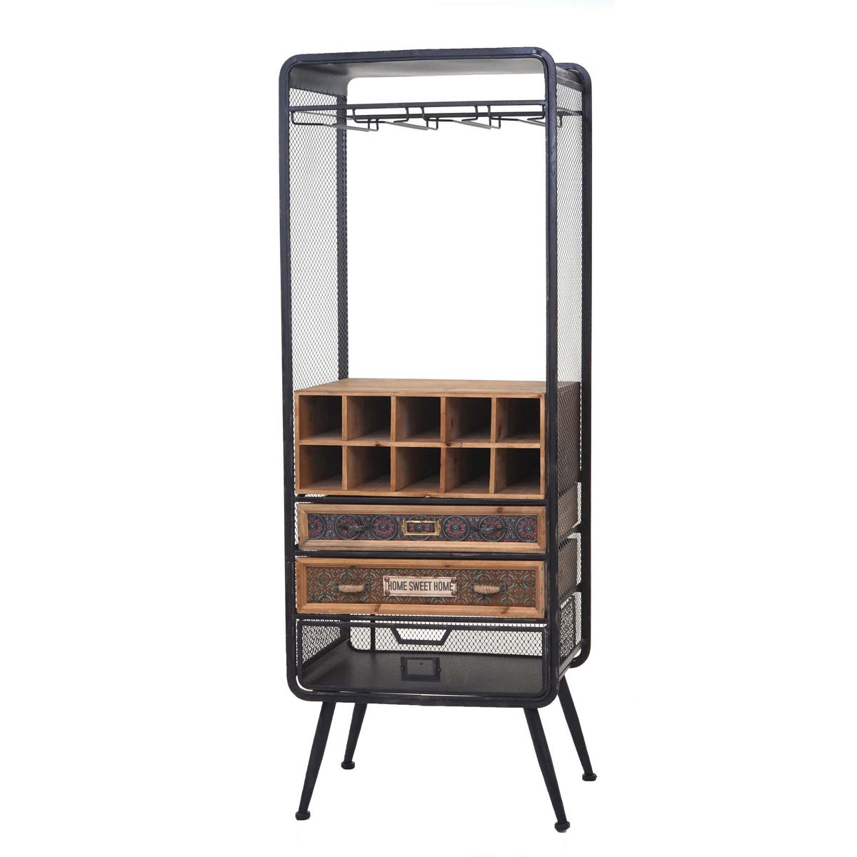 - Besonderheiten: Aufhängung für Gläser 3 Schubladen Für 10 Flaschen Ablagefläche