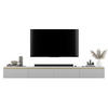 Ein Set aus zwei modernen TV-Schränken, das eine stilvolle und harmonische Einheit bildet.