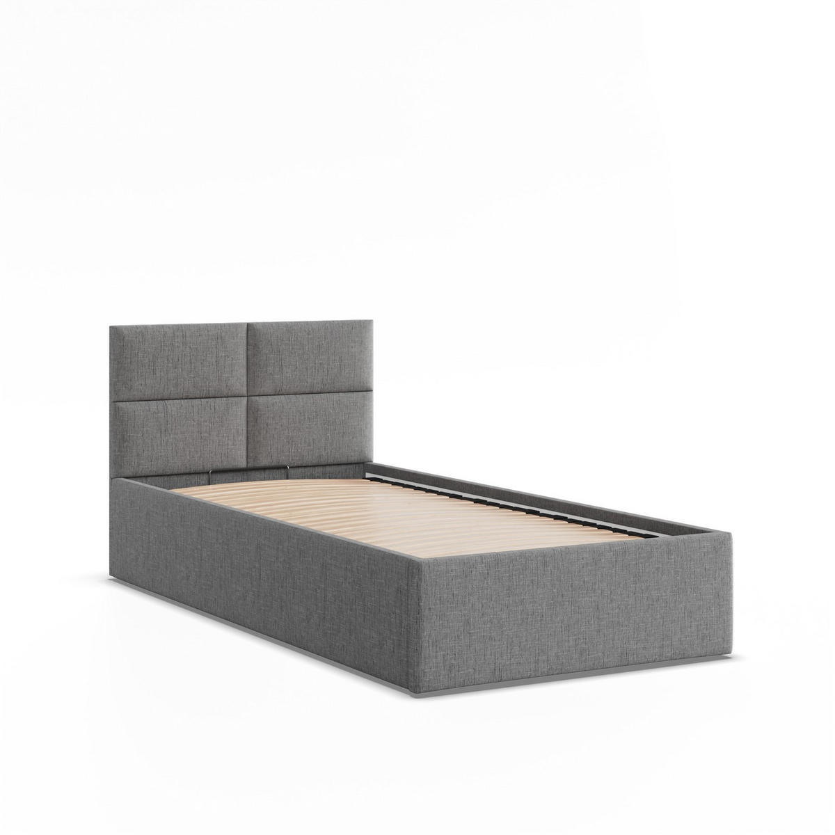 Mebligo POLSTERBETT MIT KOPFTEIL 90x200 mit Bettkasten BORGO, Grau