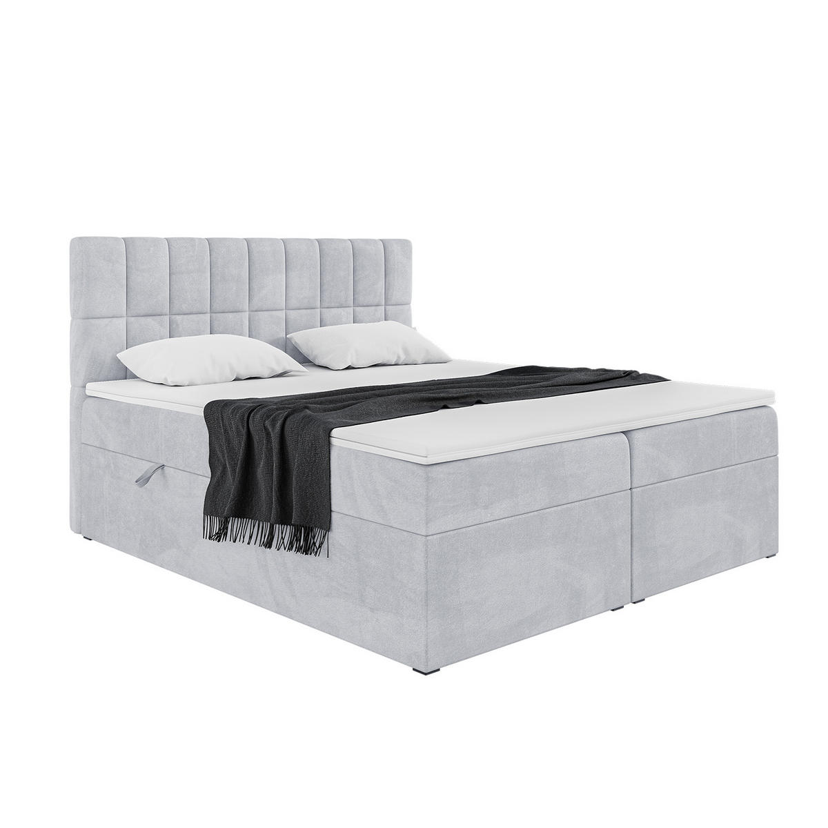 [LIEFERUNG ERFOLGT NUR BIS ZU BORDSTEINKANTE] [ROBUST UND KOMFORT AUF KÖNIGLICHE WEISE]- Vergessen Sie andere Boxspringbetten - auf unserem Boxspringbett werden Sie wie ein König/eine Königin schlafen, denn es wurde speziell für die anspruchsvollsten Benutzer entwickelt. Das LUKAS-Doppelbett kombiniert ein robustes und gediegenes Design, außergewöhnlichen Schlafkomfort und eine clevere Konstruktion, die wertvollen Platz im Haushalt spart [KOMFORTABLE MATRATZE UND TOPPER]- Das Polsterbett hat eine eingebaute mehrschichtige Premium Federkernmatratze (780 Federn/m2) H3 Härte mit 7 Härtezonen, die sich der Körperform anpasst, um einen angenehmen Schlaf zu gewährleisten und die Wirbelsäule zu entlasten. Die Matratze ist nicht alles, zum Set gehört auch ein 4 cm hoher Schaumstoff-Topper, der Ihnen das Gefühl gibt, auf einer Wolke zu schlafen [LANGLEBIGER POLSTERSTOFF]- Die Strapazierfähigkeit des Schlafbetts wird durch das abriebfeste Matt Velvet-Gewebe gewährleistet, das nicht nur eine schöne Textur hat, sondern sich auch angenehm anfühlt, seine Farbe nicht verliert und nicht schmilzt. Das elegante Kopfteil ist ein subtiles Design-Detail, das Ihr Auge erfreut und Sie bei einem Abend mit einem Buch oder Ihrer Lieblingsserie bequem unterstützt [SMART STAURAUM UND HALBAUTOMATISCHER FEDERMECHANISMUS]- Das Bett mit Stauraum verfügt über zwei seitlich zu öffnende Bettkasten mit integriertem Federmechanismus, so dass Sie diese mühelos durch Ziehen an den Textilgriffen öffnen können. Im Bettkasten können Sie Bettwäsche aufbewahren, z.B. Kissen, Bettdecke, Decke oder Bettüberwurf, die Ihr Schlafzimmer ordentlich halten Verpackung: