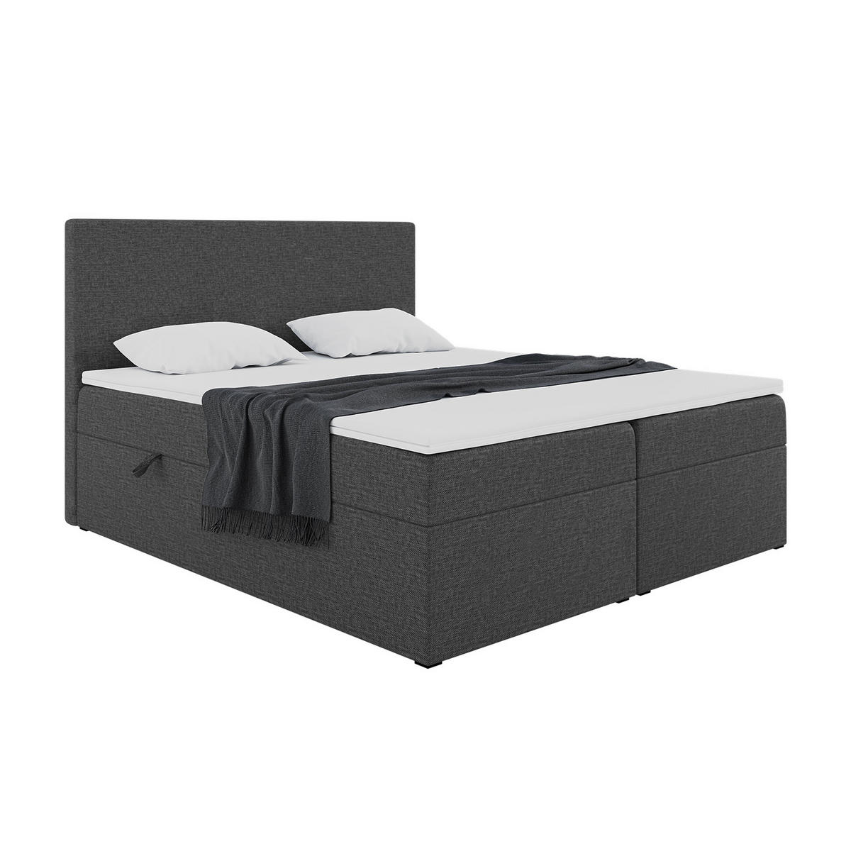 [LIEFERUNG ERFOLGT NUR BIS ZU BORDSTEINKANTE] [ROBUST UND KOMFORT AUF KÖNIGLICHE WEISE] - Vergessen Sie andere Boxspringbetten - auf unserem Boxspringbett werden Sie wie ein König/eine Königin schlafen, denn es wurde speziell für die anspruchsvollsten Benutzer entwickelt. Das Zlatan-Doppelbett kombiniert ein robustes und gediegenes Design, außergewöhnlichen Schlafkomfort und eine clevere Konstruktion, die wertvollen Platz im Haushalt spart [KOMFORTABLE MATRATZE UND TOPPER] - Das Polsterbett hat eine eingebaute mehrschichtige Premium Federkernmatratze (780 Federn/m2) H4 Härte mit 7 Härtezonen, die sich der Körperform anpasst, um einen angenehmen Schlaf zu gewährleisten und die Wirbelsäule zu entlasten. Die Matratze ist nicht alles, zum Set gehört auch ein 4 cm hoher Schaumstoff-Topper, der Ihnen das Gefühl gibt, auf einer Wolke zu schlafen [LANGLEBIGER POLSTERSTOFF] - Die Strapazierfähigkeit des Schlafbetts wird durch das abriebfeste Inari-Gewebe gewährleistet, das nicht nur eine schöne Textur hat, sondern sich auch angenehm anfühlt, seine Farbe nicht verliert und nicht schmilzt. Das elegante Kopfteil ist ein subtiles Design-Detail, das Ihr Auge erfreut und Sie bei einem Abend mit einem Buch oder Ihrer Lieblingsserie bequem unterstützt [SMART STAURAUM UND HALBAUTOMATISCHER FEDERMECHANISMUS] - Das Bett mit Stauraum verfügt über zwei seitlich zu öffnende Bettkasten mit integriertem Federmechanismus, so dass Sie diese mühelos durch Ziehen an den Textilgriffen öffnen können. Im Bettkasten können Sie Bettwäsche aufbewahren, z.B. Kissen, Bettdecke, Decke oder Bettüberwurf, die Ihr Schlafzimmer ordentlich halten Verpackung: