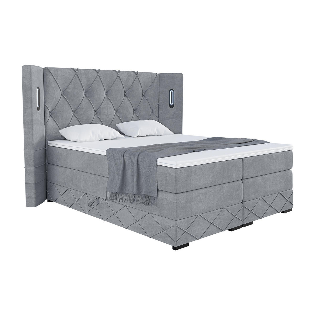 Inhalt des Sets: Boxspringbett mit Zwei Bettkästen und Matratze, Kopfteil, Matratzenauflagen (Topper), Montageanleitung und Montageteile Verpackung: