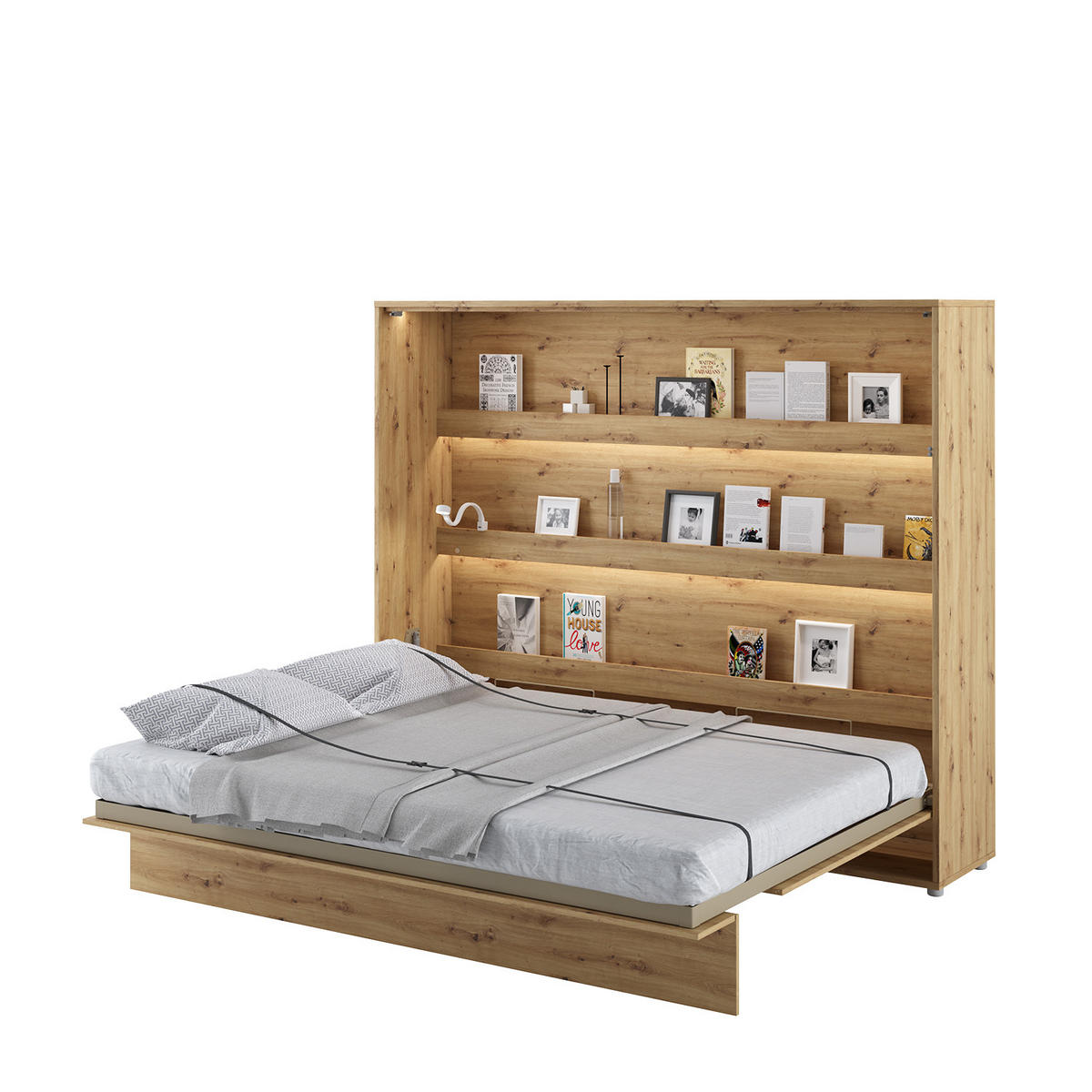 SCHRANKBETT BC-14 - 160x200cm Horizontal - Artisan Eiche mit Matratze - Eiche Artisan, Holzwerkstoff (200/160cm) - MebliniMeblini