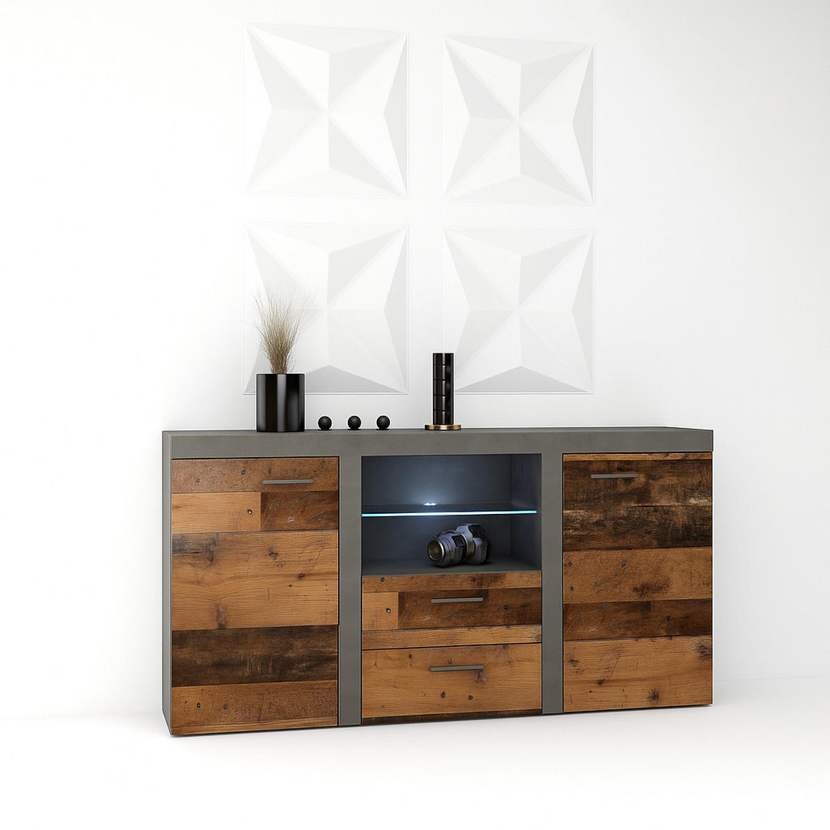 Die Beleuchtung der Glasablage unterstreicht perfekt den modernen Charakter der Kommode und lässt die Familienfotos noch besser zur Geltung kommen.
