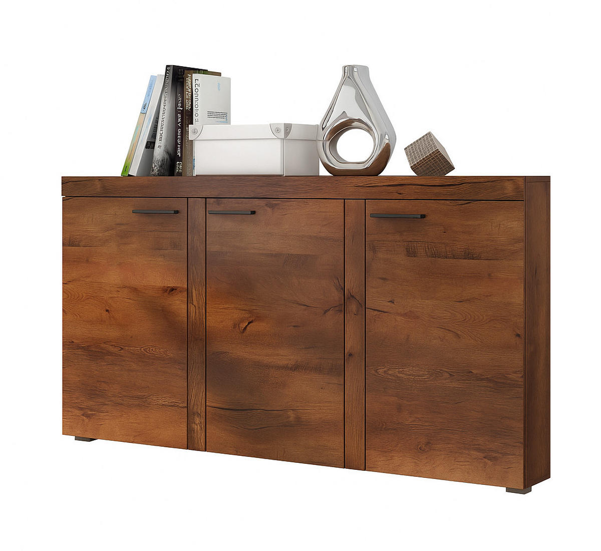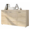 Die Kommode OKTAWIA 148 cm ist aus hochwertiger, 15 mm dicker Laminatplatte gefertigt. Das Möbel besteht aus drei Schränken, die durch Einlegeböden unterteilt sind, die Sie mit Kunststoffgriffen öffnen können. Auf der Oberseite können Sie Erinnerungsstücke an die Familie oder Ihre Lieblingsfotos ausstellen. Die Kommode wurde in einem minimalistischen, universellen Design und in fünf interessanten Farbkombinationen hergestellt. So können Sie das Möbelstück perfekt auf das Klima Ihres Interieurs abstimmen und sich eine Menge Stauraum verschaffen.