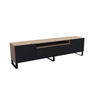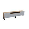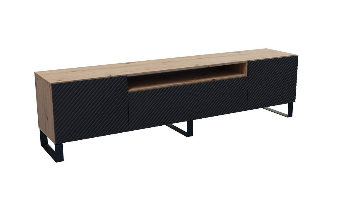 Das Möbelstück ist mit geräumigen, verschließbaren Staufächern und einer offenen Nische ausgestattet, die sich ideal zur Aufbewahrung von Multimedia-Geräten oder Dekorationen eignet. Dank seiner durchdachten Konstruktion sorgt es sowohl für Ästhetik als auch für praktischen Stauraum im Wohnzimmer.