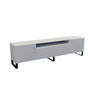 Design-TV-Schrank in minimalistischer Form, auf stabilen Metallbeinen. Er zeichnet sich durch eine elegante, gefräste Front aus, die ihm einen einzigartigen Charakter verleiht und seinen modernen Stil unterstreicht.