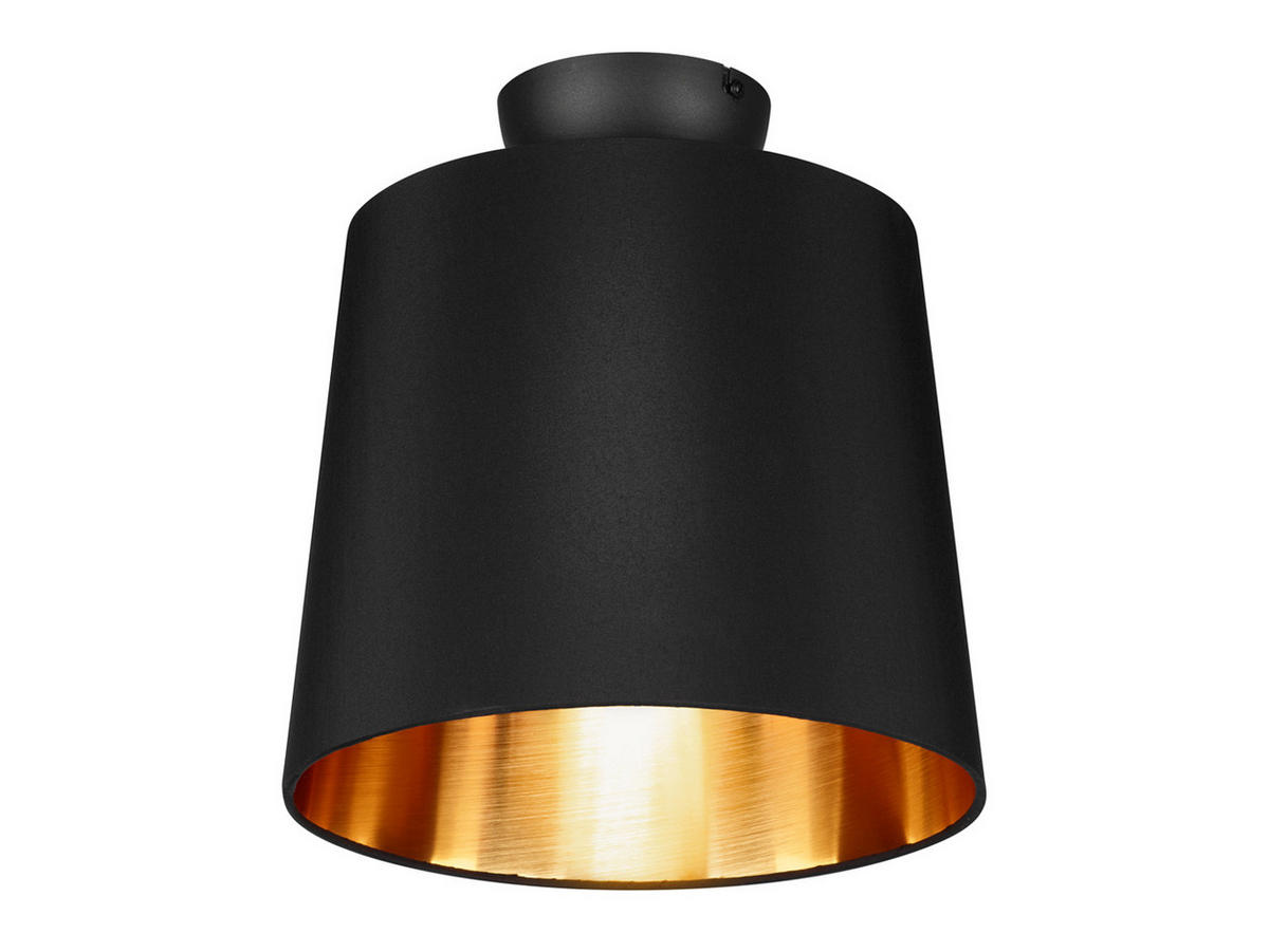 Die Deckenlampe LAUREA aus dem Hause meineWunschleuchte verspricht zeitlose Eleganz durch das Zusammenspiel von Schwarz und Gold.Mit ihrem ansprechenden Design und dem dekorativen Lampenschirm wird sie schnell zum neuen Blickfang in Ihrem Wohnraum. Das zeitlose Erscheinungsbild der Deckenleuchte sorgt im Zusammenspiel mit dem im Innern goldenen Lampenschirm für ein angenehmes warmes Licht Ambiente. Der schwarze Lampenschirm aus Stoff hat einen Durchmesser von 30 cm und zusammen mit dem schwarz matten Korpus ist die Leuchte 31,5 cm hoch.So angenehm wie das Licht dieser Deckenleuchte, so vielfältig sind auch ihre Einsatzmöglichkeiten: Ob als stylishe Deckenbeleuchtung im Wohnzimmer, als moderne Deckenlampe im Schlafzimmer über dem Bett oder als tolle Designerlampe im Flur.Die runde Deckenlampe ist mit einer E27 Fassung ausgestattet und kann mit Leuchtmitteln bis max. 40 Watt bestückt werden. Dieses ist nicht mit im Lieferumfang enthalten.Bei Einbau eines geeigneten Wanddimmers und Verwendung von dimmbaren Leuchtmitteln können Sie die Deckenlampe über Ihre Hausinstallation dimmen und so zusätzlich für eine ganz individuelle Beleuchtung sorgen.
