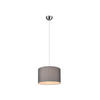 Der runde Lampenschirm aus schwarzem Stoff verleiht der Pendelleuchte ihren ganz eigenen, stilvollen Charakter. Mit einem Schirmdurchmesser von 40 cm sowie einer Silber matten Abhängung kommt das schöne Design der Pendelleuchte angenehm zur Geltung. So attraktiv wie das Erscheinungsbild der Hängelampe, so vielfältig sind auch ihre Einsatzmöglichkeiten: Ob als dekoratives Pendel über Ihrem Esstisch in Küche oder Esszimmer, als hübscher Blickfang in großzügigen Fluren und Dielen oder auch als ansprechende Designerlampe in öffentlichen Bereichen, wie z.B. über Empfangstheken in Büros und Praxen. Ganz gleich, welche Art von Hängeleuchten Sie für Ihre Zwecke benötigen, ob Sie auf der Suche nach modernen Esszimmerlampen, Küchenlampen, Wohnzimmerlampen, Wohnraumleuchten oder hochwertigen Innenlampen zum Aufhängen sind, all diesen Ansprüchen wird diese Pendellampe in jeder Hinsicht gerecht.Das Pendel ist einer E27 Fassung ausgestattet und wird inklusive einem dimmbaren LED Leuchtmittel mit 7 Watt und 560 Lumen in Warmweiß geliefert. So können Sie das Pendel über Ihre Hausinstallation dimmen und damit für eine ganz individuelle Beleuchtung sorgen.