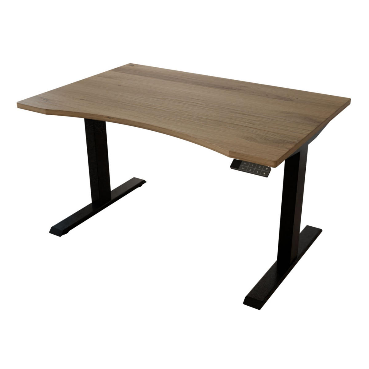 Elektrisch höhenverstellbarer Schreibtisch aus massiver Wildeiche – 120 x 80 cm – ergonomische Ausfräsung