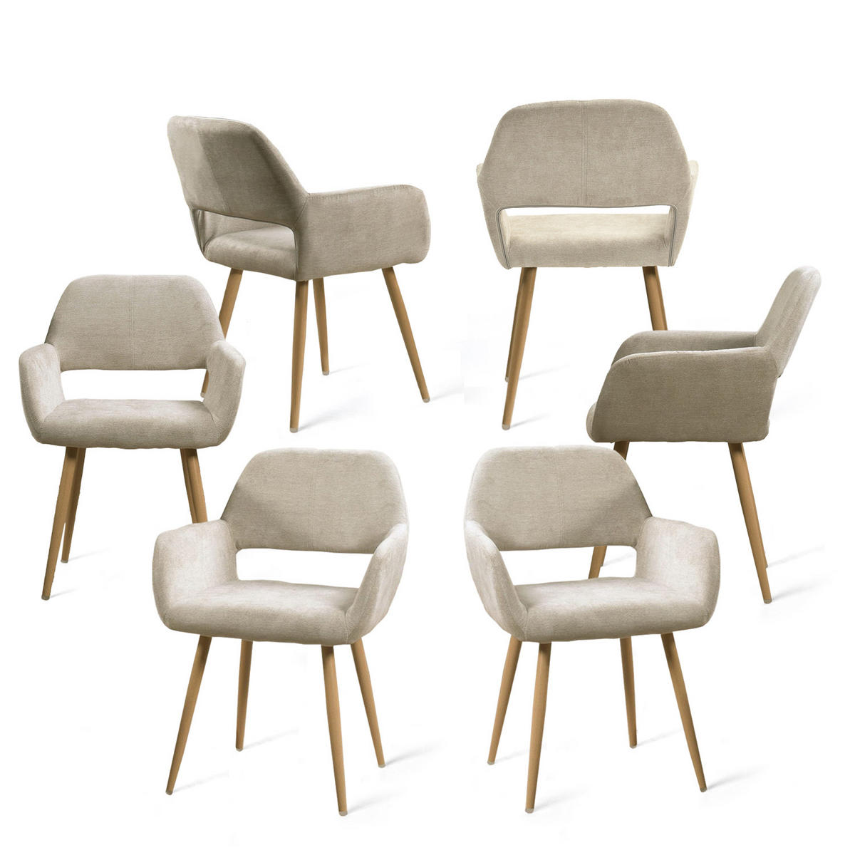 ARMLEHNSTUHL-SET 6 Stück in Beige Webstoff: skandinavischer Stil für große Runden