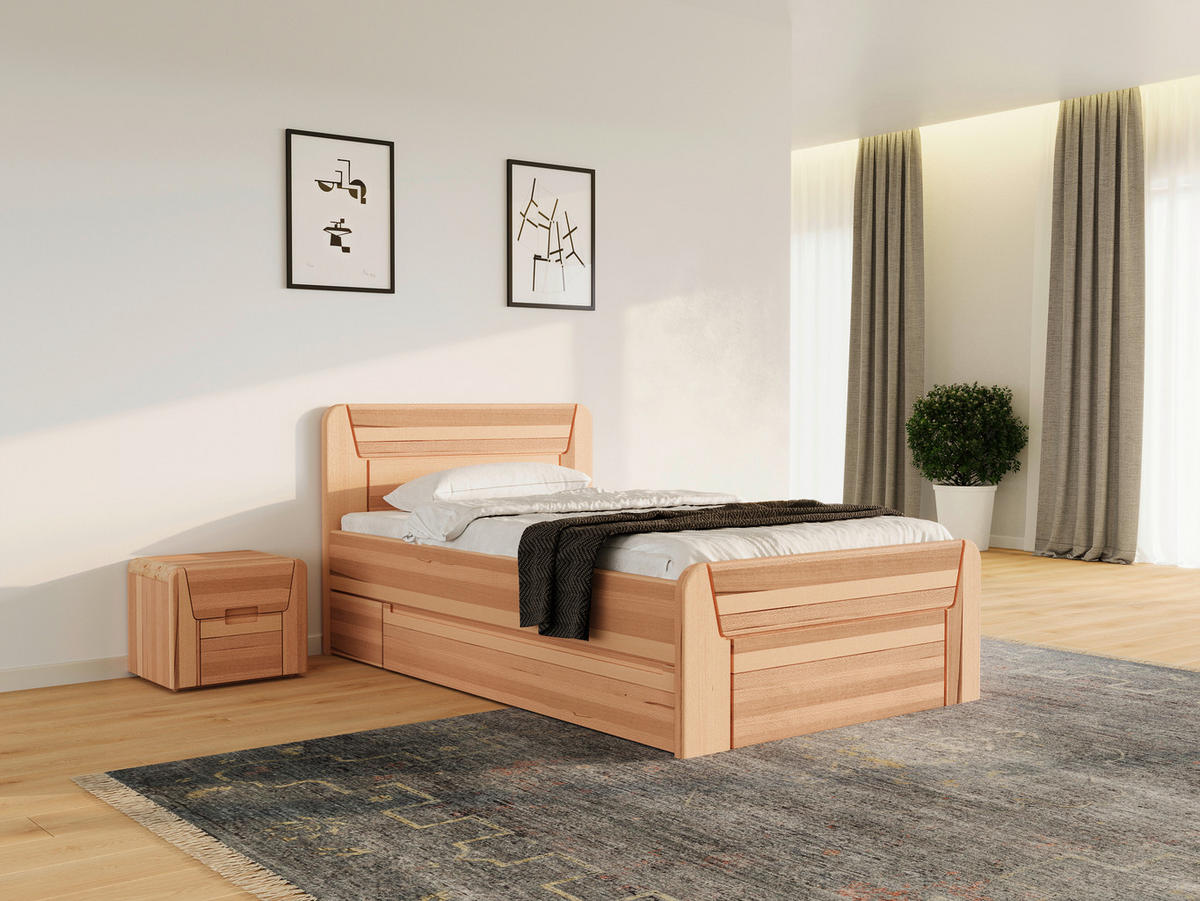 - Besonderheiten: Bettkasten, für Elektrolattenrost geeignet, in verschiedenen Holzarten erhältlich