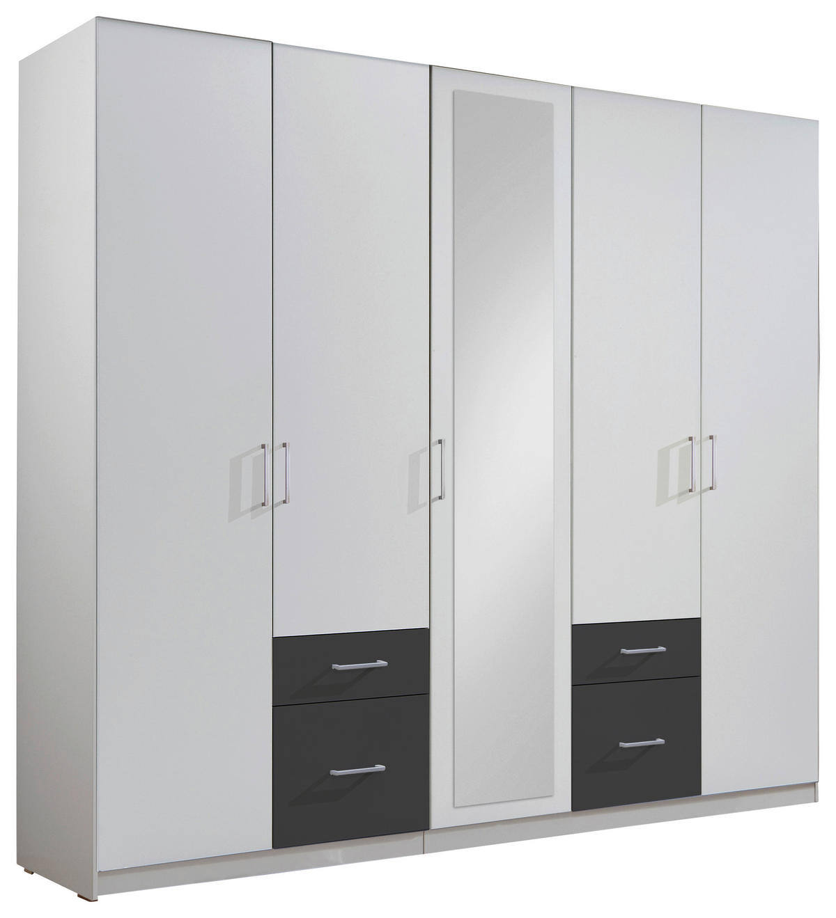 Großzügiger Kleiderschrank in Weiß - 5-türig mit 4 Schubladen
