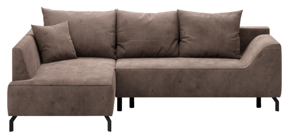 MID.YOU ECKSCHLAFSOFA Cord Braun inkl. Zierkissen, Rückenkissen, Bettkasten, Schlaffunktion, Rücken echt, Liegefläche im Originalstoff
