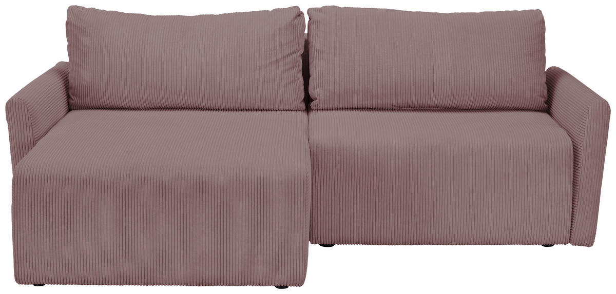 ECKSOFA Rosa Cord Rückenkissen, Bettkasten, Schlaffunktion, Rücken echt, Liegefläche im Originalstoff