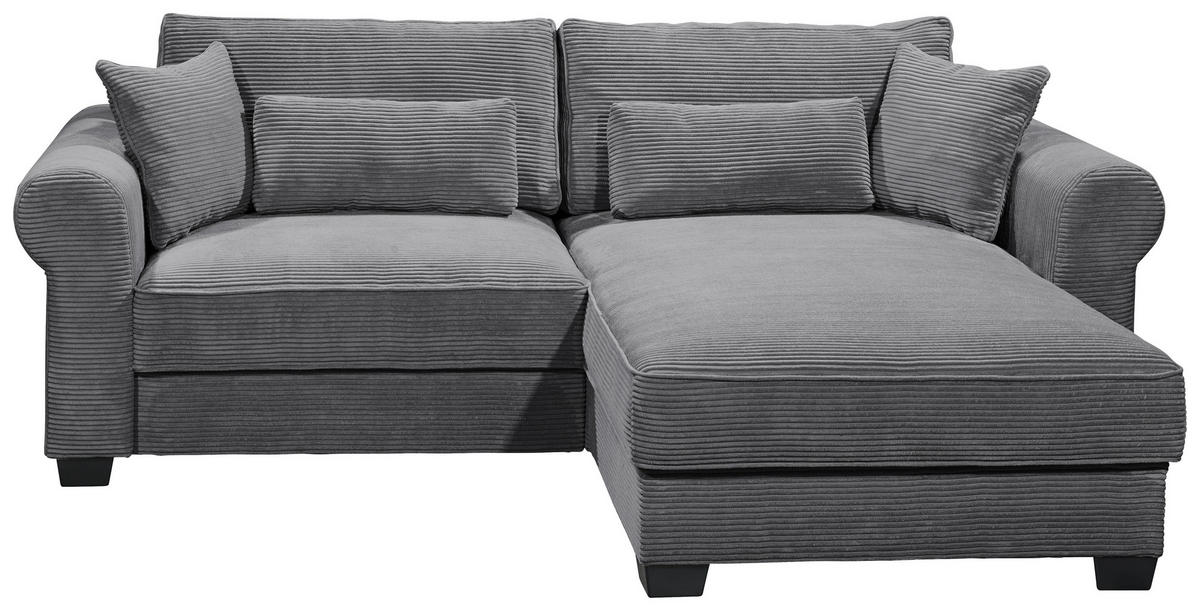 MID.YOU ECKSOFA Anthrazit Cord Zierkissen, Rückenkissen, Nierenkissen, Bettkasten, Schlaffunktion