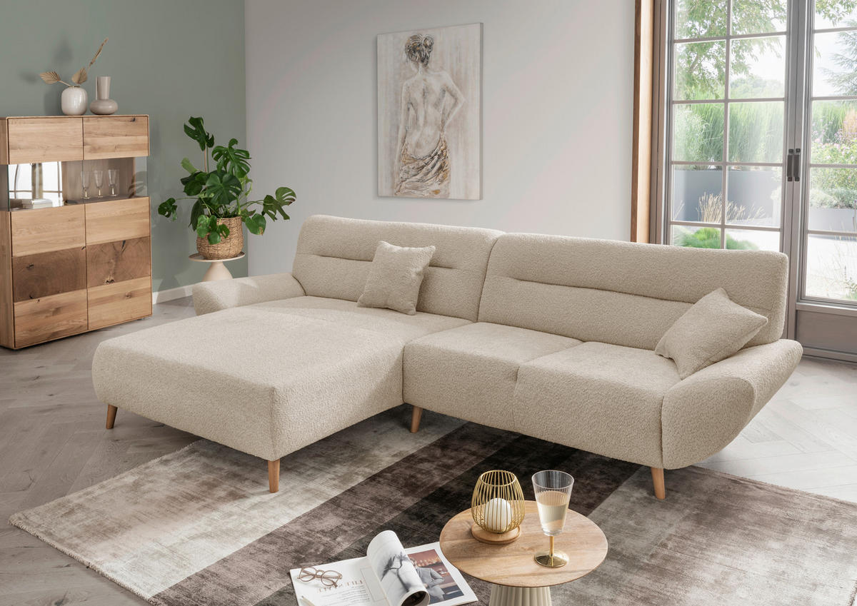 MID.YOU ECKSOFA Beige Bouclé Zierkissen