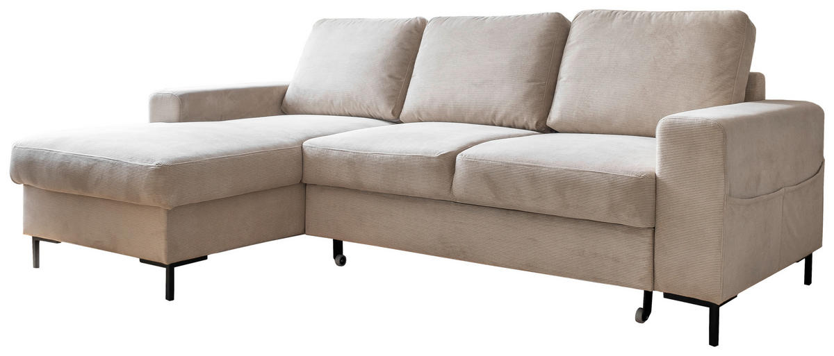 Ab auf Ihr beiges Eckschlafsofa mit Cord-Bezug!