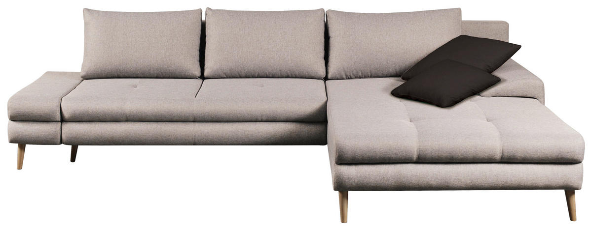 ECKSOFA inkl. Funktionen Greige Webstoff Rückenkissen, Bettkasten, Schlaffunktion, Rücken echt