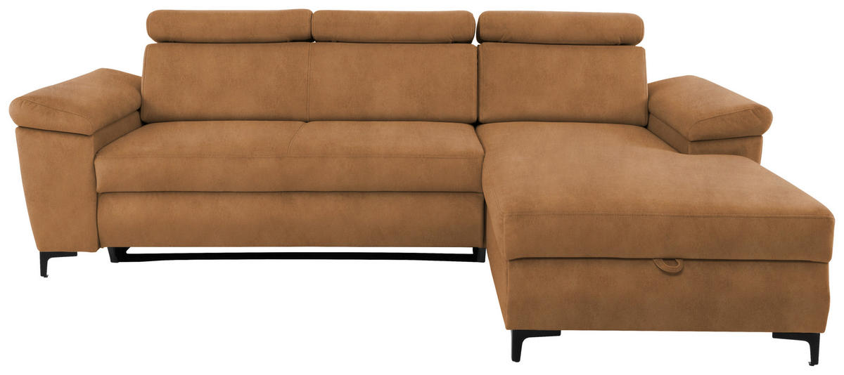 MID.YOU ECKSOFA Bernsteinfarben Velours Bettkasten, Kopfteilverstellung, Stauraum