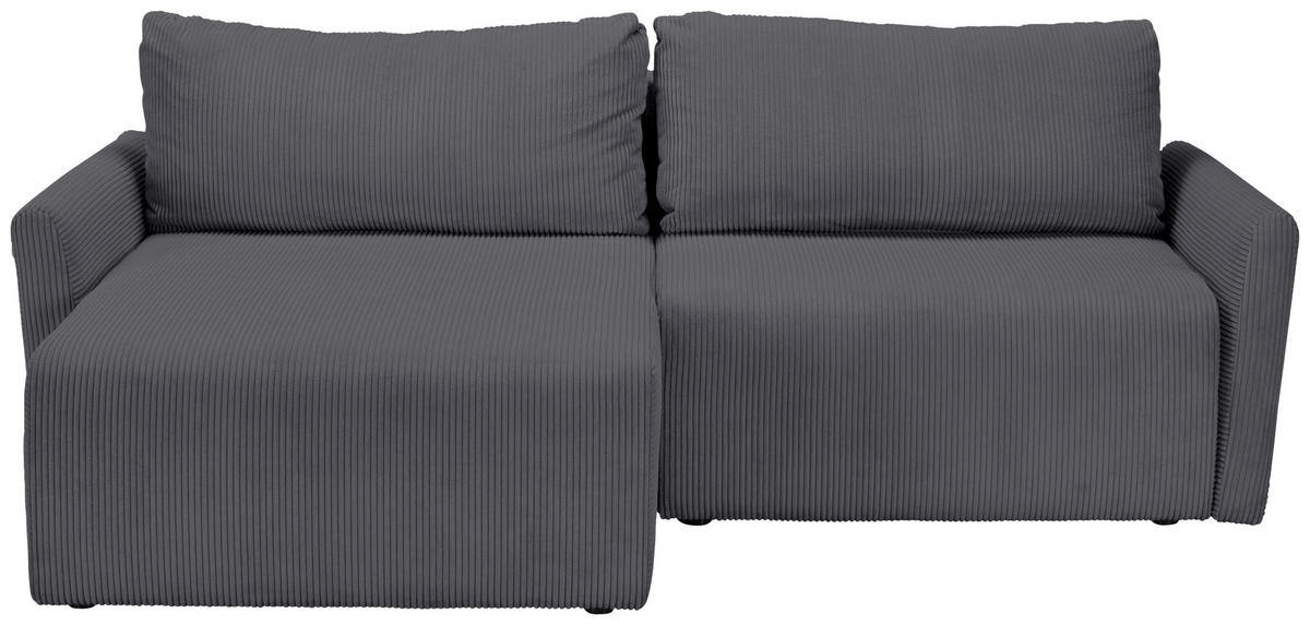 ECKSOFA Anthrazit Cord Rückenkissen, Bettkasten, Schlaffunktion, Rücken echt, Liegefläche im Originalstoff