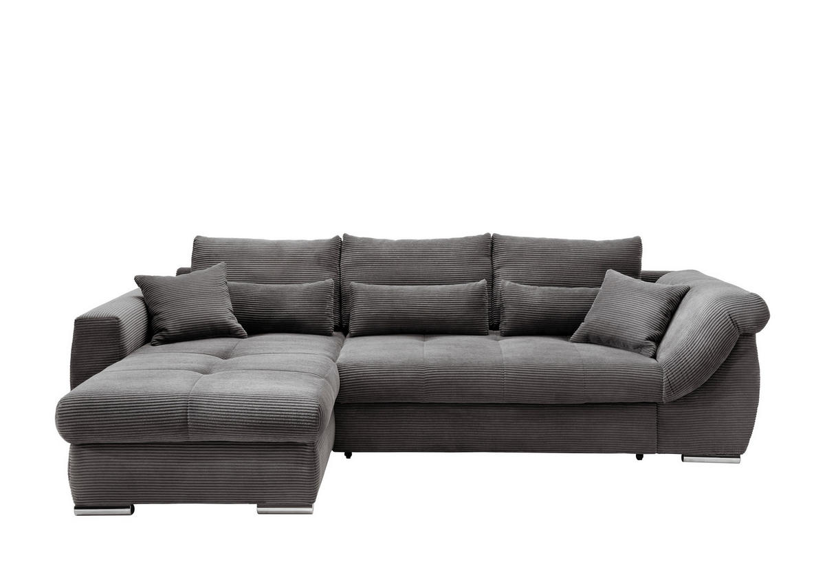 ECKSOFA Grau Cord Zierkissen, Rückenkissen, Schlaffunktion, Rücken echt, Liegefläche im Originalstoff