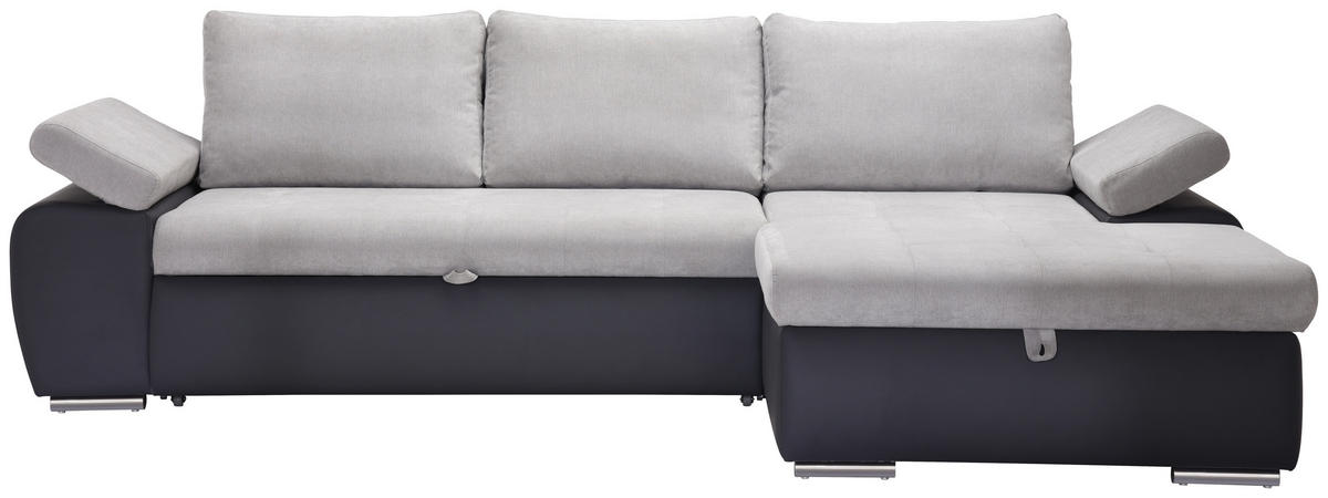 MID.YOU ECKSOFA Grau, Dunkelgrau Flachgewebe Rückenkissen, Armlehnenkissen, Bettkasten, Schlaffunktion, Rücken echt, Armteilverstellung