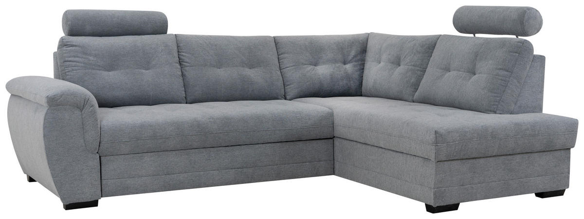 MID.YOU ECKSOFA Grau Mikrofaser, Struktur Bettkasten, Schlaffunktion, Rücken echt, Kopfteilverstellung, Kopfstütze
