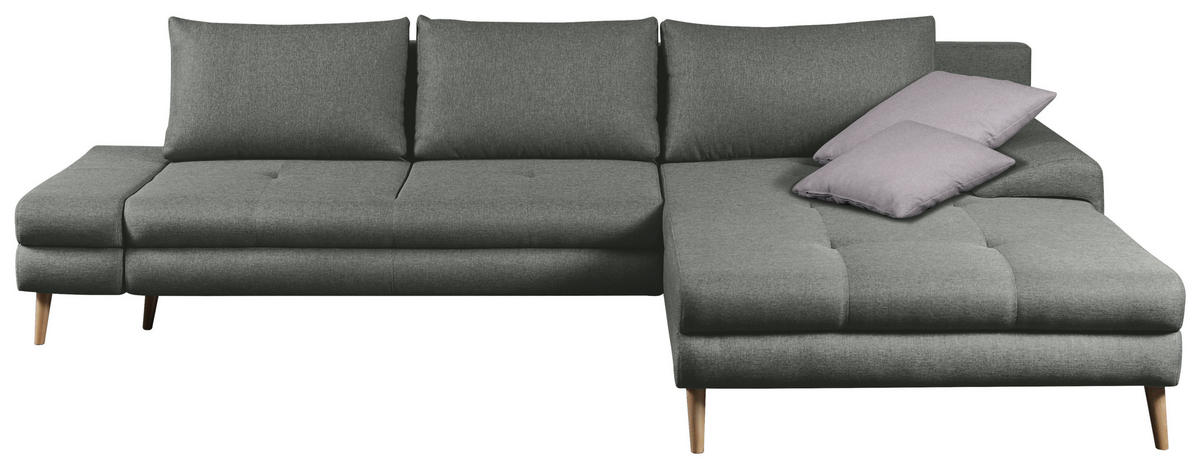 MID.YOU ECKSOFA Grau Webstoff Zierkissen, Rückenkissen, Bettkasten, Schlaffunktion, Rücken echt, Stauraum