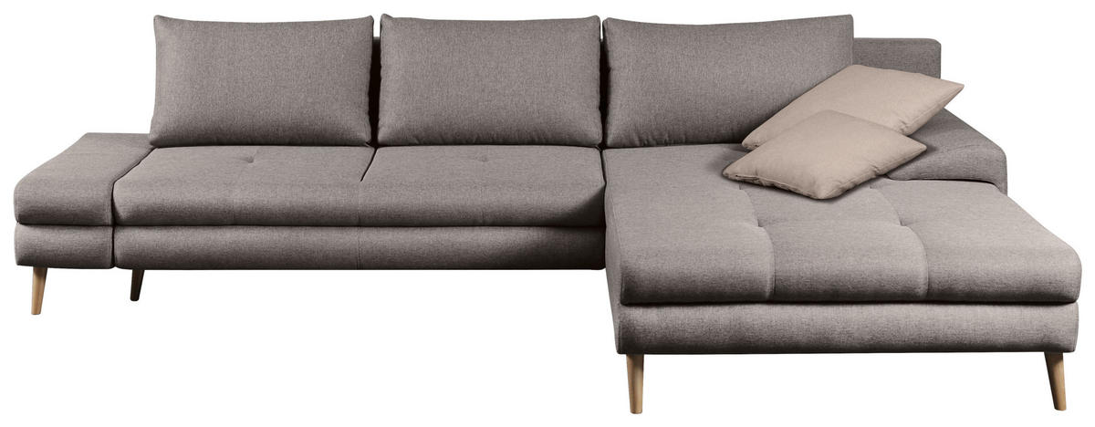 ECKSOFA inkl. Funktionen Greige Webstoff Rückenkissen, Bettkasten, Schlaffunktion, Rücken echt