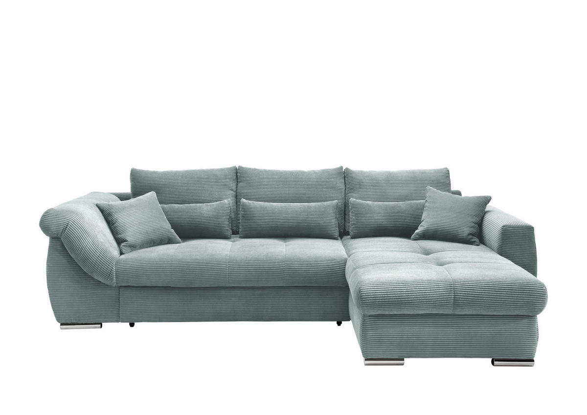 Entspannung par excellence: Ecksofa mit Cord-Bezug in Hellblau
