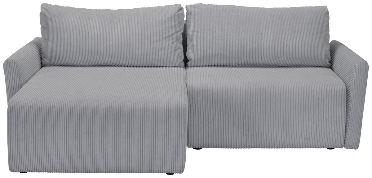 ECKSOFA Grau Cord Rückenkissen, Bettkasten, Schlaffunktion, Rücken echt, Liegefläche im Originalstoff