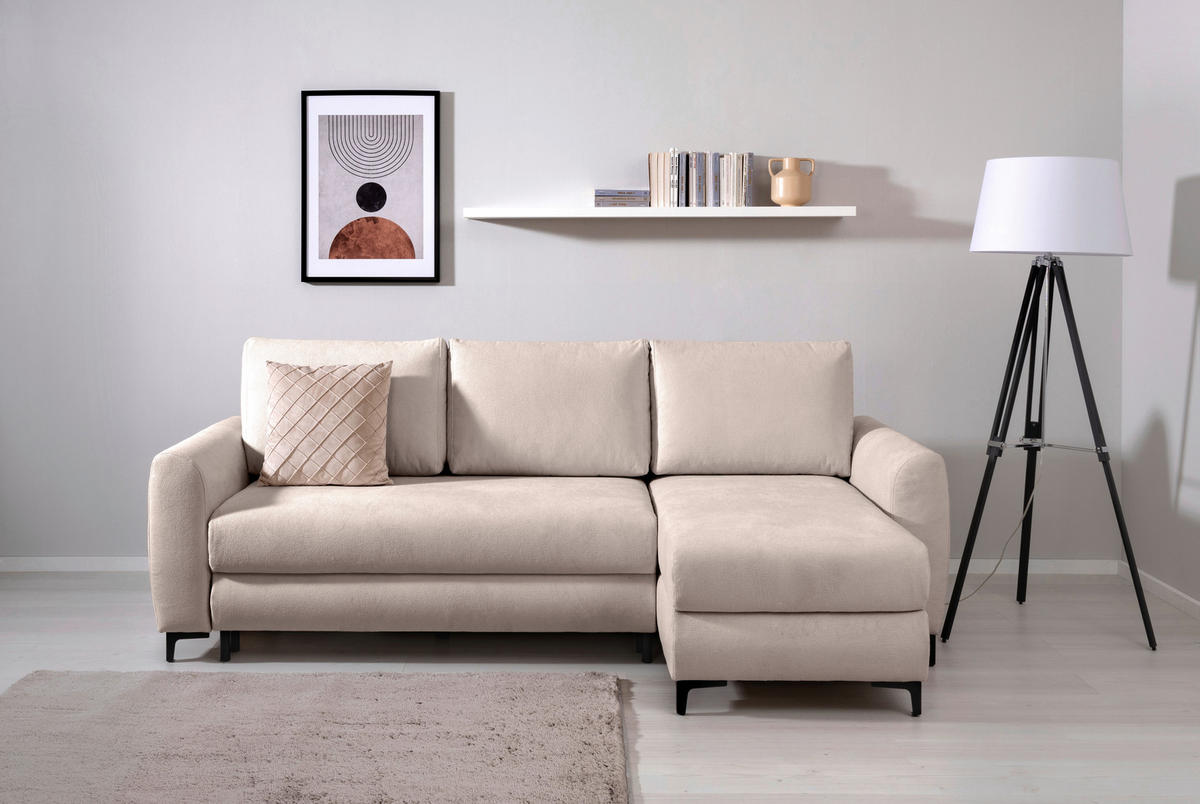 MID.YOU ECKSOFA Moli Beige Mikrofaser Rückenkissen, Bettkasten, Schlaffunktion, Rücken echt